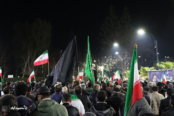 به گزارش پایگاه خبری آوای محمودآباد، مردم محمودآباد بعد از اقامه نماز جمعه به خیابان آمدند و خواستارد انتقام سخت از سردمداران استکبار جهانی و ایادی آنها شدند. این راهپیمایی در حالی برگزار شد که مردم در این شبها هم پای دیگر نقاط کشور به خیابان ها آمدند و با حضور خود نشان دادند که انقلاب ساری و جاریست.